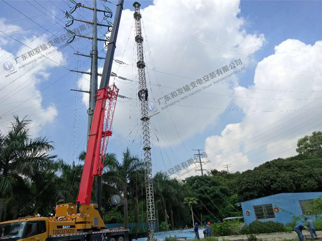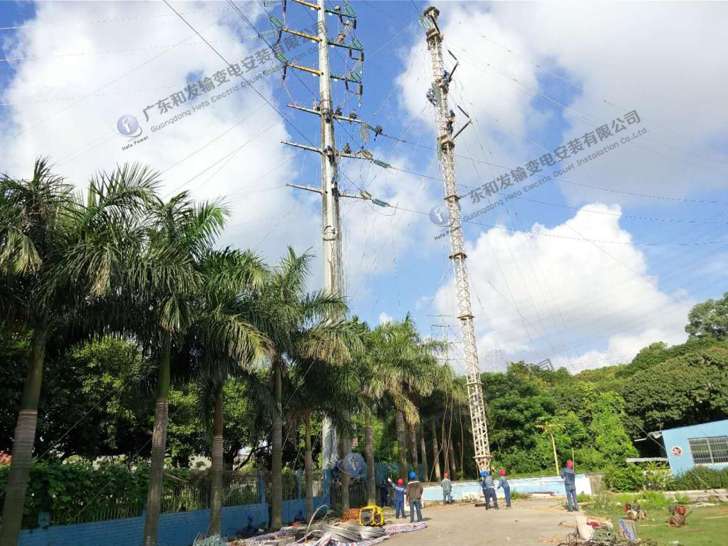 2018年7月28日-8月5日,深圳供電局使用廣東和發(fā)的ERS(電力線路應(yīng)急搶修系統(tǒng))作為臨時(shí)轉(zhuǎn)供電,順利完成了龍崗區(qū)110kV北燕ⅠⅡ回線路的T接建設(shè),有效地避免了工程建設(shè)期間的長(zhǎng)時(shí)間停電,達(dá)到了讓電網(wǎng)負(fù)荷運(yùn)行影響降到最低的效果。
