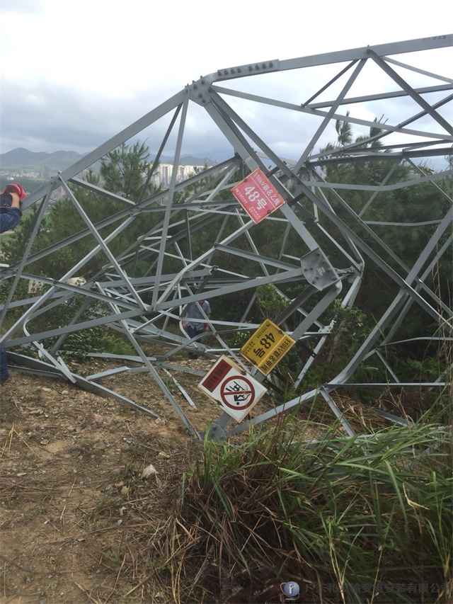 據(jù)惠州相關(guān)人員說,在“山竹”登陸期間惠州當(dāng)?shù)氐淖罡唢L(fēng)速為16級(jí);110kV聯(lián)名甲乙線N45-N49耐張段長(zhǎng)度為1493米,因N48塔發(fā)生倒塔,N47有輕微傾斜現(xiàn)象,同時(shí)地理環(huán)境較為惡劣,地處山上,通訊信號(hào)和交通條件極差,大型機(jī)械無法到達(dá),面臨重重的困難和阻礙,和發(fā)公司董事長(zhǎng)親自坐鎮(zhèn)現(xiàn)場(chǎng)指揮搶修工作,和發(fā)共投入接近百人的搶修隊(duì)伍,為這條承擔(dān)著惠州重要用途的高壓線路夜以繼日地連續(xù)奮戰(zhàn)。