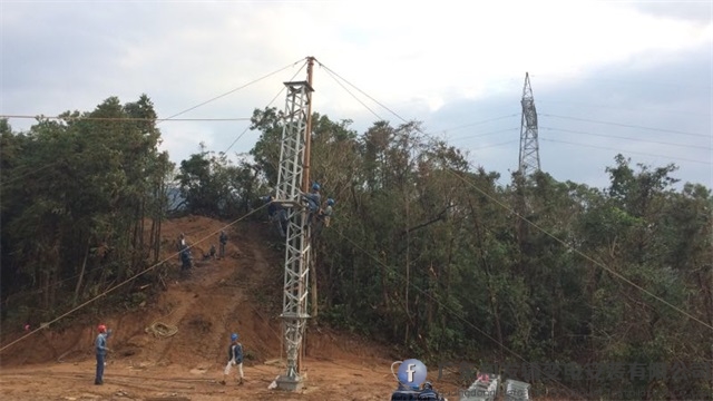面對臺風(fēng)“山竹”,深圳當(dāng)時錄得最高風(fēng)速68米/秒;深圳大鵬新區(qū)的110kV白德線出現(xiàn)倒塔事故造成線路停電,這條線路承擔(dān)了某重要電廠的送出任務(wù)。廣東和發(fā)輸變電安裝有限公司接到南方電網(wǎng)深圳供電局的通知后,ERS搶修部隊充分發(fā)揮先鋒模范作用,公司董事長趙明星帶領(lǐng)黨員骨干沖鋒在前,勇?lián)厝?,鍛造出一支黨員帶頭的應(yīng)急搶險“尖兵”,在危急關(guān)頭上演了一幕幕感人至深的生動場面?,F(xiàn)場場地及道路清理、運(yùn)輸ERS應(yīng)急塔、開挖地錨坑、搭設(shè)跨越架,共計釆用ERS電力應(yīng)急塔14基,全部是山地平均小運(yùn)1公里多,搶修隊伍24小時工作;這是南方電網(wǎng)在山地首次大面積應(yīng)用ERS電力應(yīng)急搶修系統(tǒng),即使在中秋節(jié)當(dāng)天,和發(fā)公司的ERS搶修部隊并沒有因連續(xù)作戰(zhàn)產(chǎn)生懈怠,數(shù)百人依然在緊張有序地進(jìn)行搶修復(fù)電。