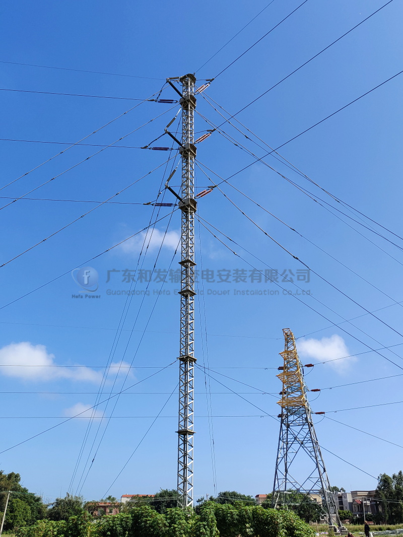 2021年10月,湛江環(huán)城高速南三島大橋110kV坡田甲乙線#51-#54、#113-#114塔段線路遷改工程正式開工,該項目由廣東省南粵交通投資建設(shè)有限公司投資、中國電建集團(tuán)重慶工程有限公司承建,廣東和發(fā)輸變電安裝有限公司負(fù)責(zé)ERS臨時轉(zhuǎn)供電及施工。為縮短停電時間、確保工程有序開展和按期、安全完成,廣東和發(fā)采用ERS應(yīng)急性專用型桿塔形成臨時轉(zhuǎn)供電線路桿塔,為湛江“三環(huán)四通”的交通大格局電力遷改建設(shè)和經(jīng)濟(jì)發(fā)展添磚加瓦。