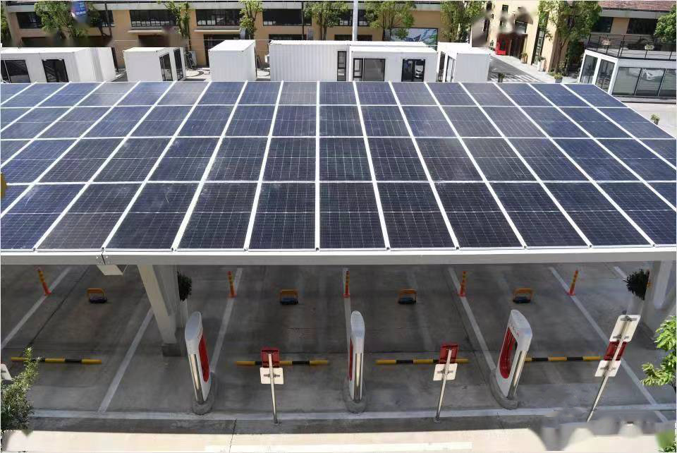 為了推廣綠色能源,車棚下先期安裝兩個新能源汽車充電樁,可以達到光伏發(fā)電、汽車充電的模式,完全綠色、環(huán)保。加快推進新能源汽車產業(yè)化,既利于節(jié)能減排,又可促進新能源產業(yè)的全方面發(fā)展。